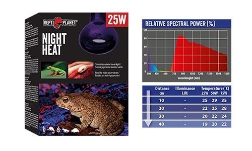 Nocna żarówka Night Heat firmi REPTI PLANET wytwarza bardzo mało światła imitując światło księżyca.