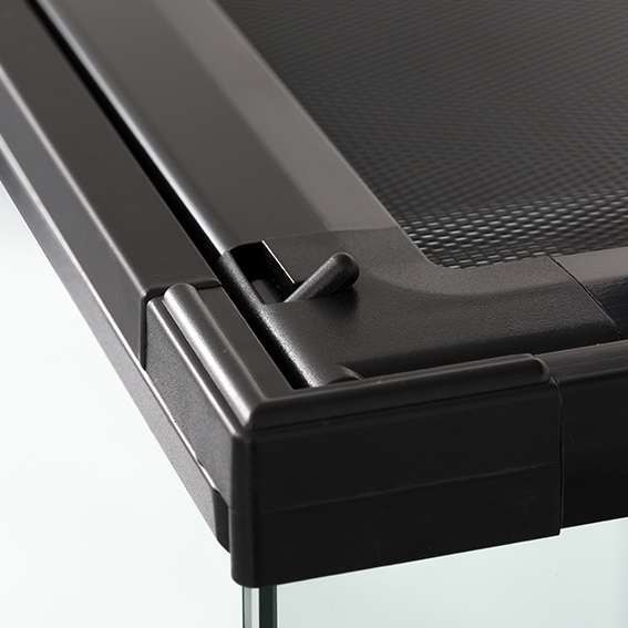 Ładnie i solidnie wykończone. Górna część wykonana z siatki wentylacyjnej. Otwierana górna pokrywa, wysuwana na prowadnicy. Otwierane drzwiczki z zamkiem.